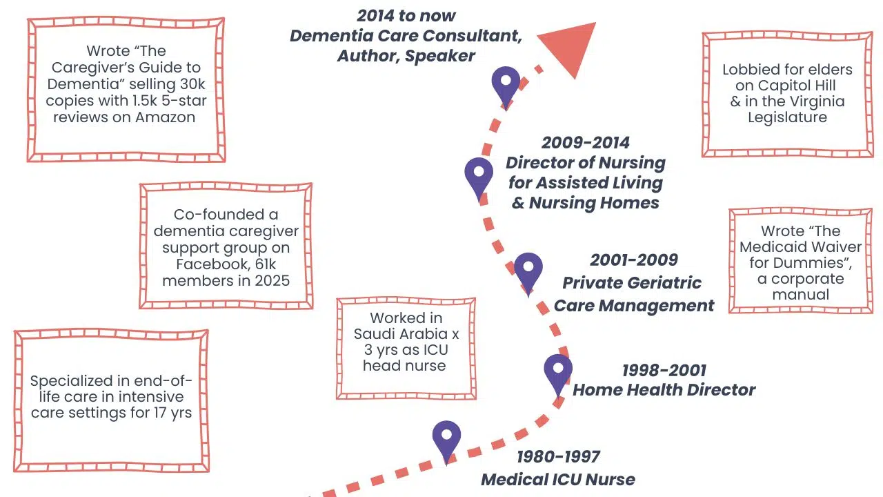 I’m Gail Weatherill, RN, known in professional circles as The Dementia Nurse. Two decades ago, I moved from intensive care nursing to home health and long-term care. There, I came to know hundreds of people with dementia and their families.